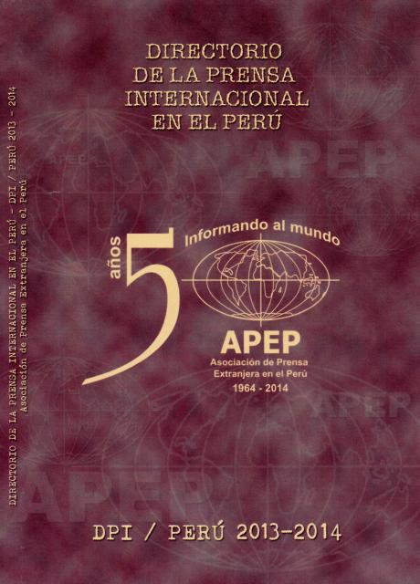 La Asociación de Prensa Extranjera en Perú (APEP) publica esta nueva edición de su indispensable directorio bajo un marco singular: cumplimos 50 años este 2014. Y en ese medio siglo podemos decir, sin temor a equivocarnos, que no solo nos hemos consolidado como gremio sino que nos hemos convertido en una institución de referencia y con capacidad de convocatoria. Una convocatoria plural que dice mucho del rigor profesional de nuestro quehacer periodístico.